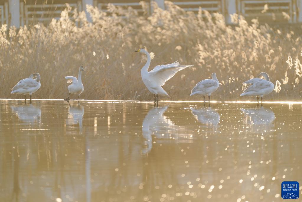 近日,一群天鵝在北京市密云區太師屯鎮清水河棲息覓食、嬉戲追逐,成為冬日里的美麗景觀(guān)。