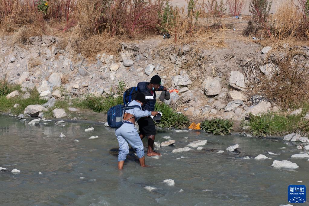12月7日在墨西哥華雷斯城拍攝的照片顯示,移民試圖通過(guò)美墨邊境的布拉沃河進(jìn)入美國。