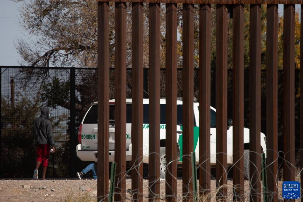 12月7日在墨西哥華雷斯城拍攝的照片顯示,試圖翻越邊境墻進(jìn)入美國的移民被美國邊境執法人員攔截。