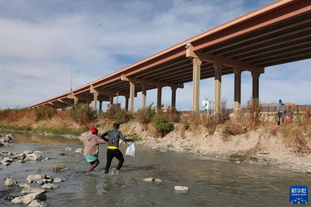 12月7日在墨西哥華雷斯城拍攝的照片顯示,移民試圖通過(guò)美墨邊境的布拉沃河進(jìn)入美國。