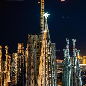 這是12月8日在西班牙巴塞羅那拍攝的圣家堂塔頂之星。