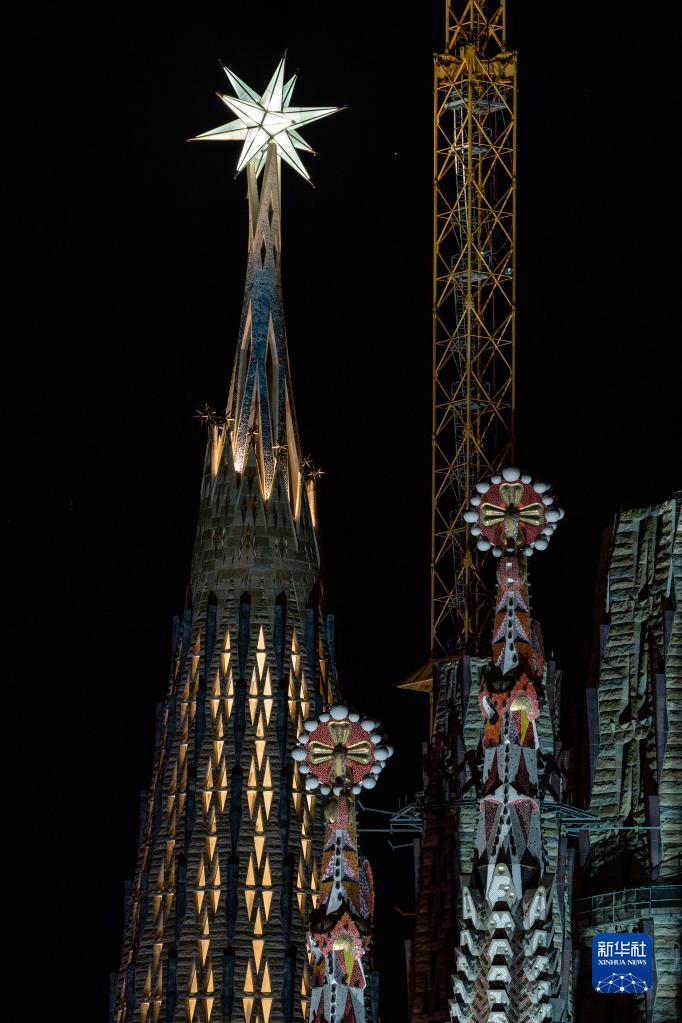 這是12月8日在西班牙巴塞羅那拍攝的圣家堂塔頂之星。