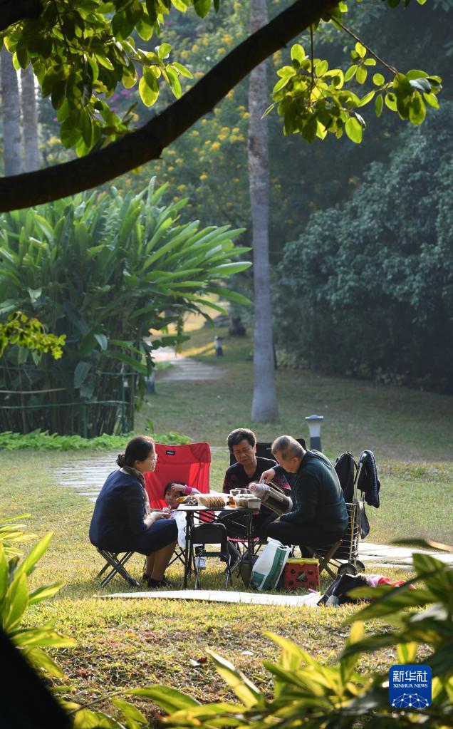 12月11日,在廣西南寧市南湖邊,市民在休閑娛樂(lè )。