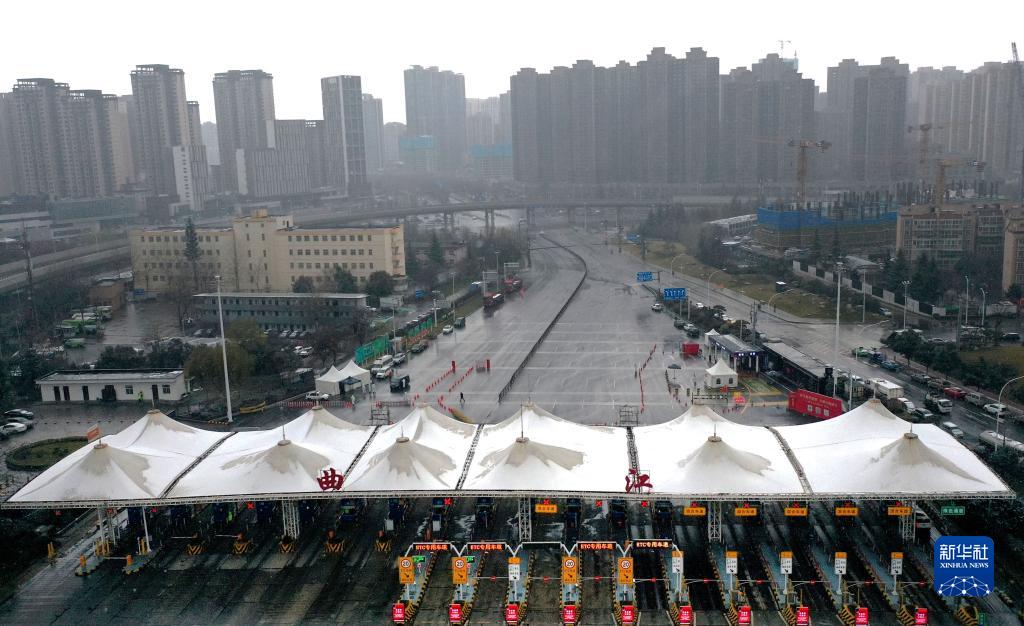 封閉后的西安市曲江高速收費站(12月25日攝,無(wú)人機照片)。
