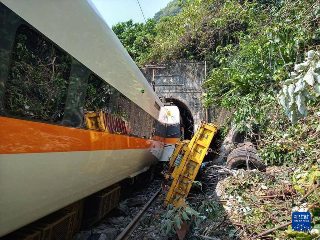 2021年4月2日上午,臺灣鐵路408次太魯閣號列車(chē)在駛出花蓮縣和仁隧道231米后、距清水隧道前39米處時(shí),與滑落至軌道上的貨車(chē)相撞,造成8節車(chē)廂全部出軌,49人罹難,逾200人受傷。這是事故現場(chǎng)。