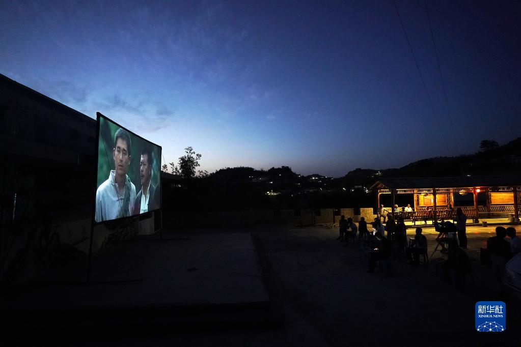 2021年8月10日,山西省柳林縣三交鎮高家焉村村民在觀(guān)看露天電影。40多年來(lái),三交鎮電影放映隊累計為村民們播放了上萬(wàn)部影片。