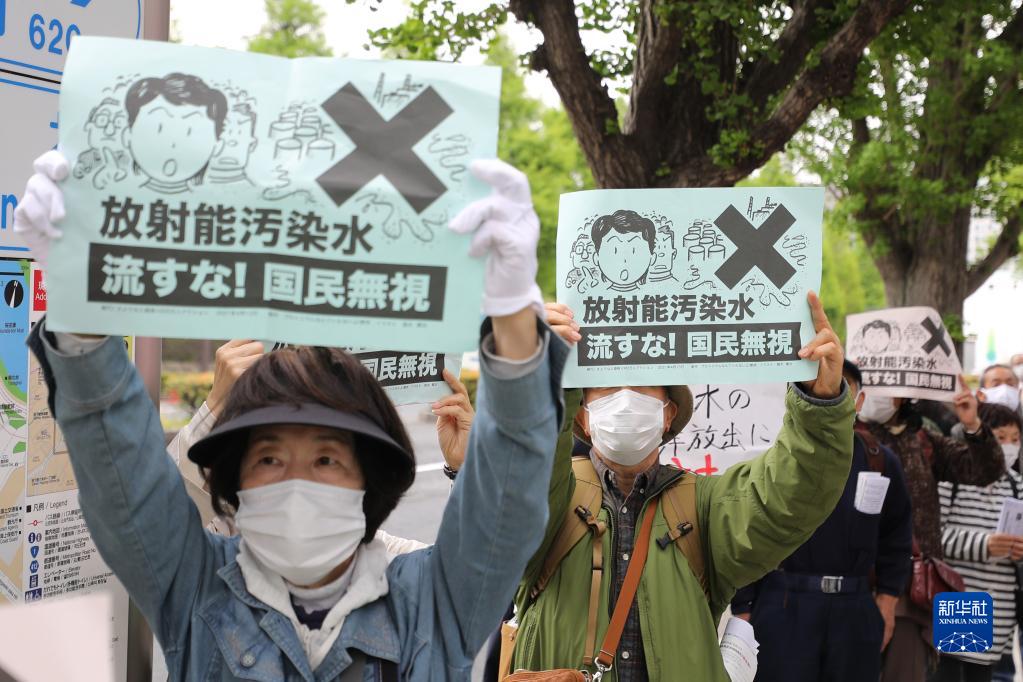 2021年4月13日,抗議者在日本東京的首相官邸外集會(huì ),反對福島核污染水排入大海。