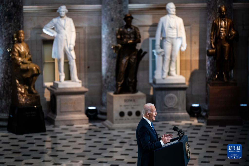 1月6日,美國總統拜登在華盛頓國會(huì )大廈發(fā)表講話(huà),紀念國會(huì )山騷亂事件一周年。