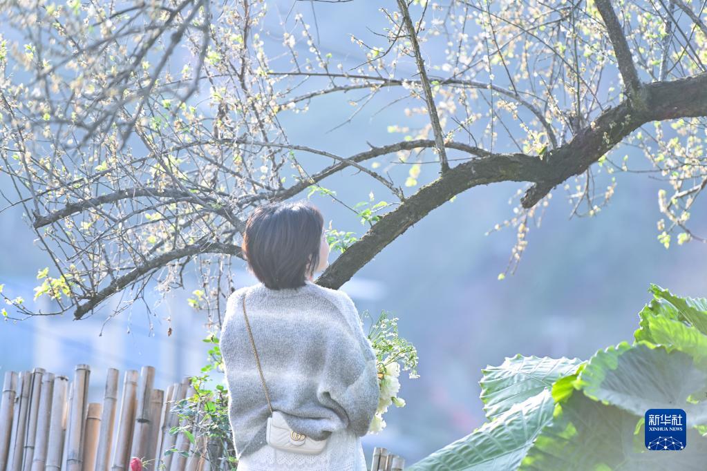 1月13日,游客在福建省福州市永泰縣葛嶺鎮溪洋村賞梅。新華社發(fā)(周義 攝)