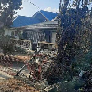 這是1月20日早晨在湯加首都努庫阿洛法拍攝的遭受海嘯侵襲后的街道和房屋。