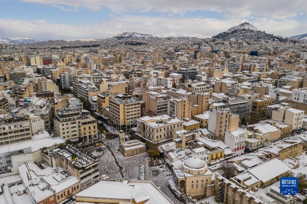 這是1月25日拍攝的雪后的希臘雅典市一景(無(wú)人機照片)。