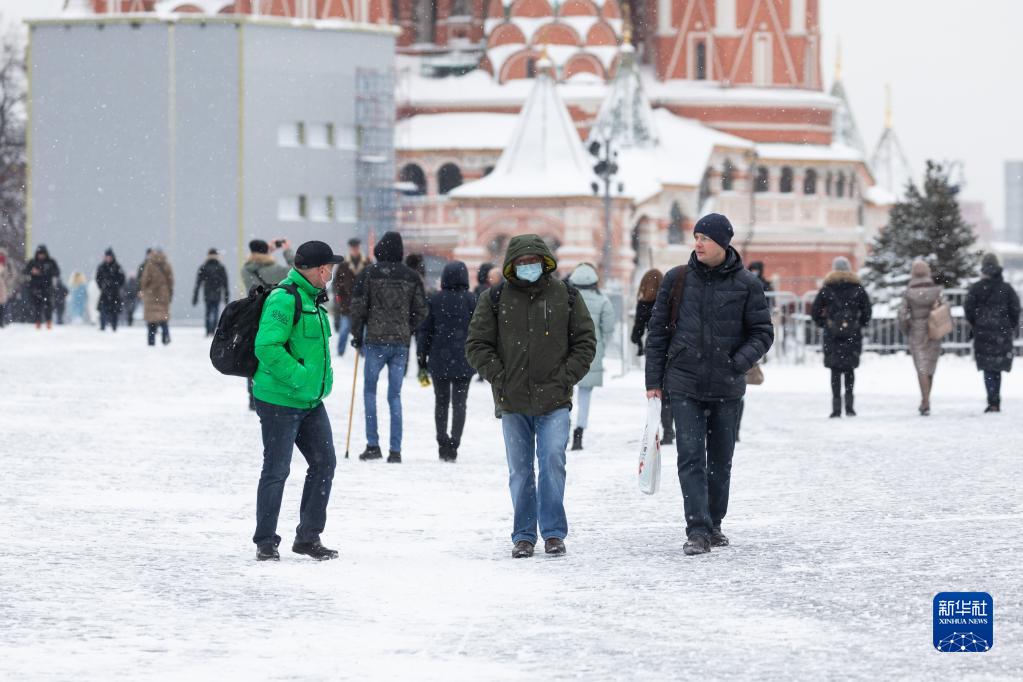 1月26日,人們走在俄羅斯莫斯科紅場(chǎng)上。