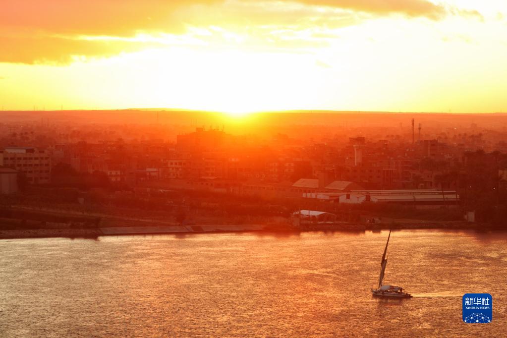 1月26日,一艘帆船行駛在埃及開(kāi)羅日落時(shí)分的尼羅河上。