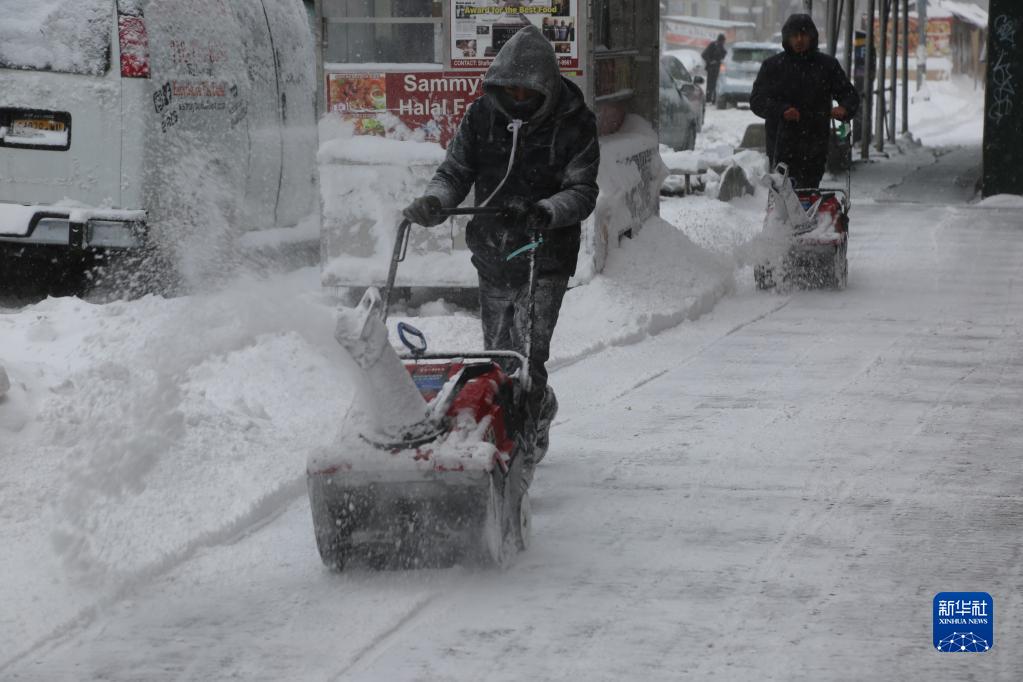 1月29日,居民在美國紐約清掃路上積雪。