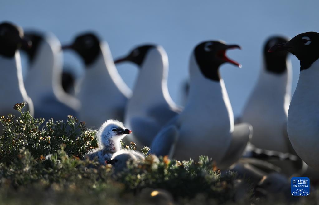 遺鷗在陜西省神木市紅堿淖濕地保護區的鳥(niǎo)島上繁殖的小遺鷗(2021年6月3日攝)。
