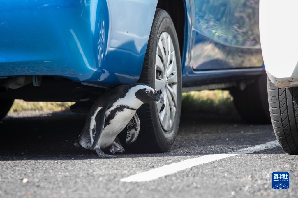 2月5日,在南非西蒙鎮的一個(gè)停車(chē)場(chǎng),一只非洲企鵝從車(chē)底鉆出來(lái)。