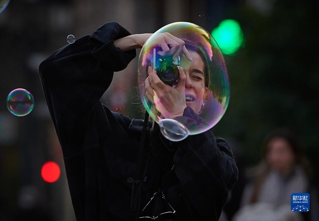 2月11日,一名女子在西班牙巴倫西亞市中心拍攝照片。