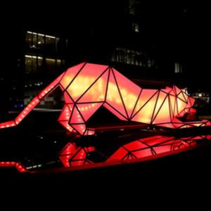 2月17日,在英國倫敦,慶祝中國虎年的燈光藝術(shù)裝置在巴特西發(fā)電站燈光節上展出。