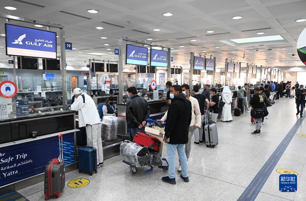 2月20日,在科威特費爾瓦尼耶省的科威特國際機場(chǎng)出發(fā)大廳,旅客辦理登機手續。