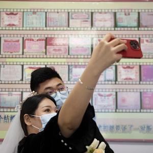 2月22日,在哈爾濱市道里區民政局婚姻登記處,新人在登記結婚。