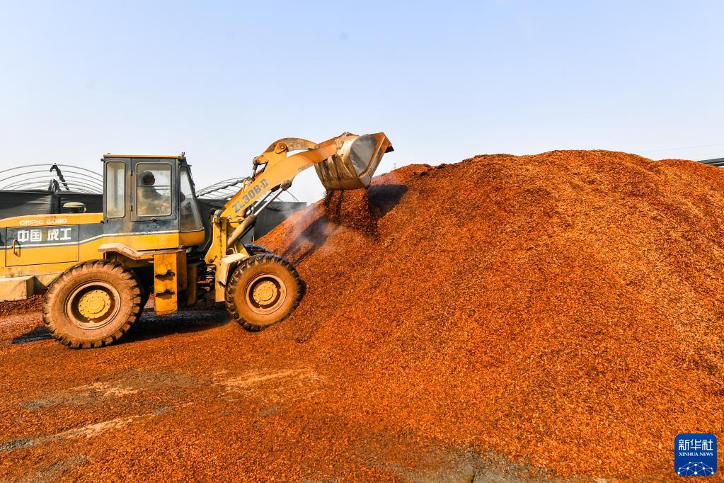 2月23日,工作人員在萬(wàn)榮縣香菇產(chǎn)業(yè)園內整理生產(chǎn)菌棒的原料。