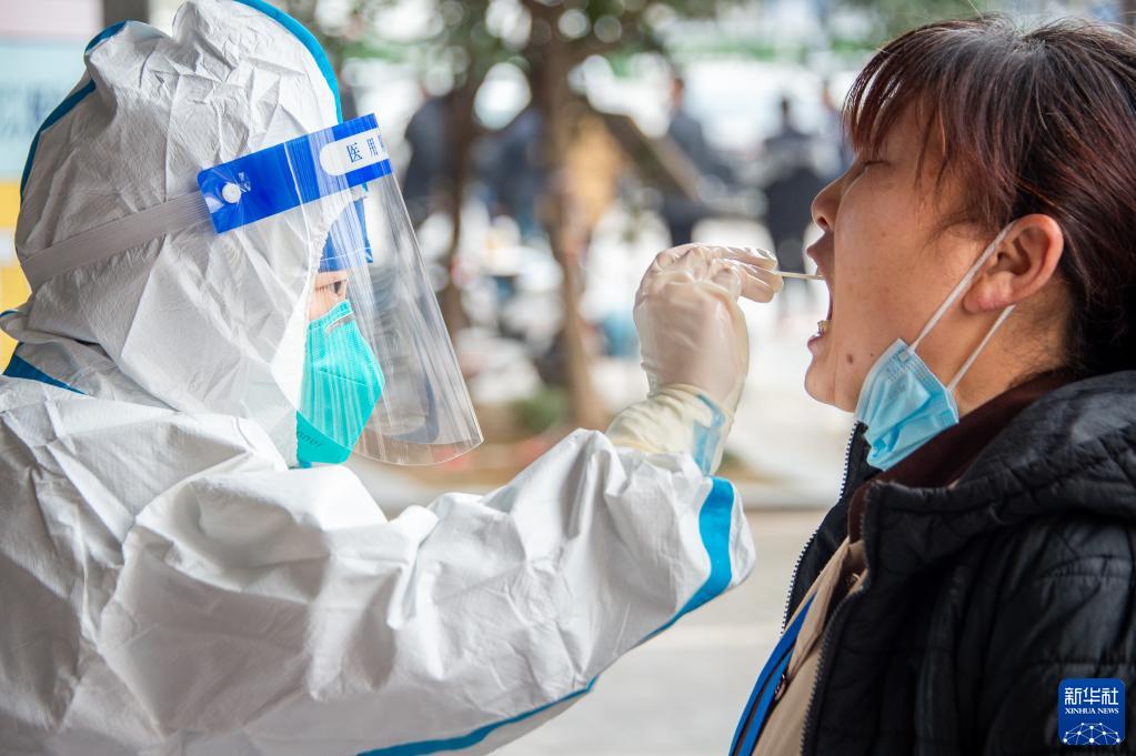 2月22日,市民在武漢市圓夢(mèng)家園社區核酸檢測點(diǎn)進(jìn)行核酸檢測。