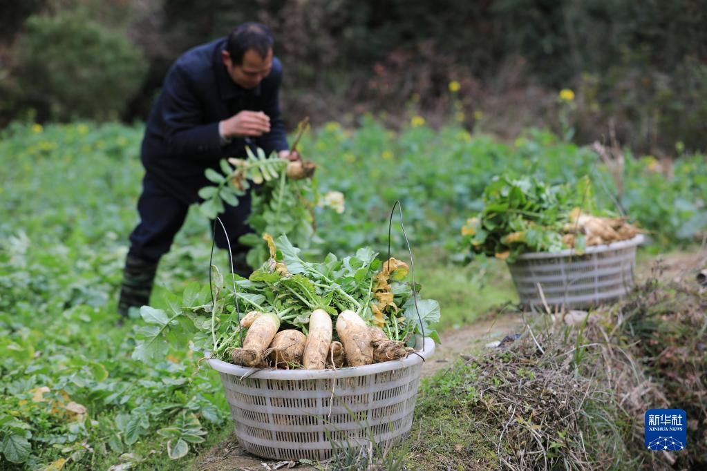 2月24日,貴州省從江縣剛邊鄉三聯(lián)村村民在田間采收蘿卜。