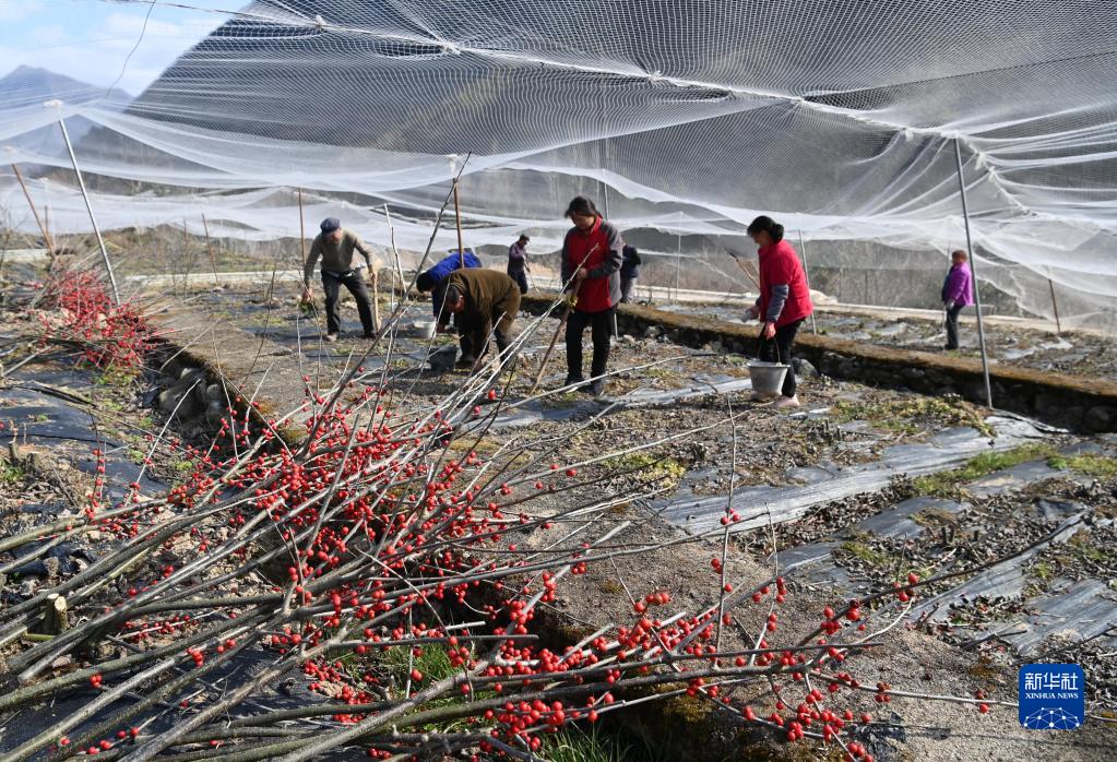 2月24日,留壩縣馬道鎮沙壩村村民在本村的高山花卉基地栽培苗木。