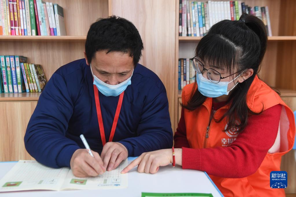 2月23日,在湖州市織里鎮晟舍村殘疾人之家,來(lái)自周邊的殘疾人(包括精神殘疾、智力殘疾和肢體殘疾)在志愿者輔導下練習寫(xiě)字。