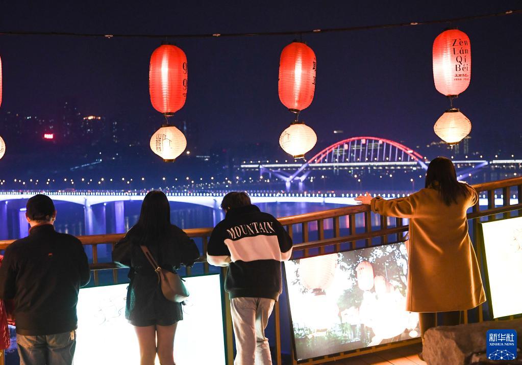 2月26日,游客在重慶山城巷觀(guān)賞夜景。