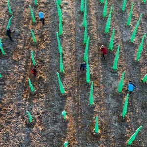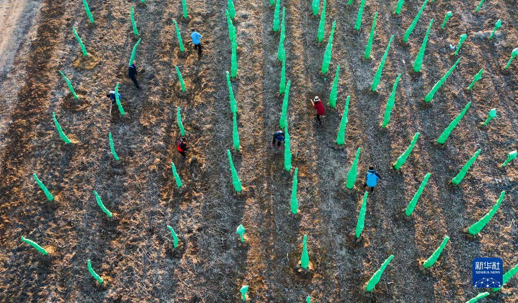 2月27日,河北省遵化市劉備寨鄉農民在樹(shù)木苗圃勞作(無(wú)人機照片)。