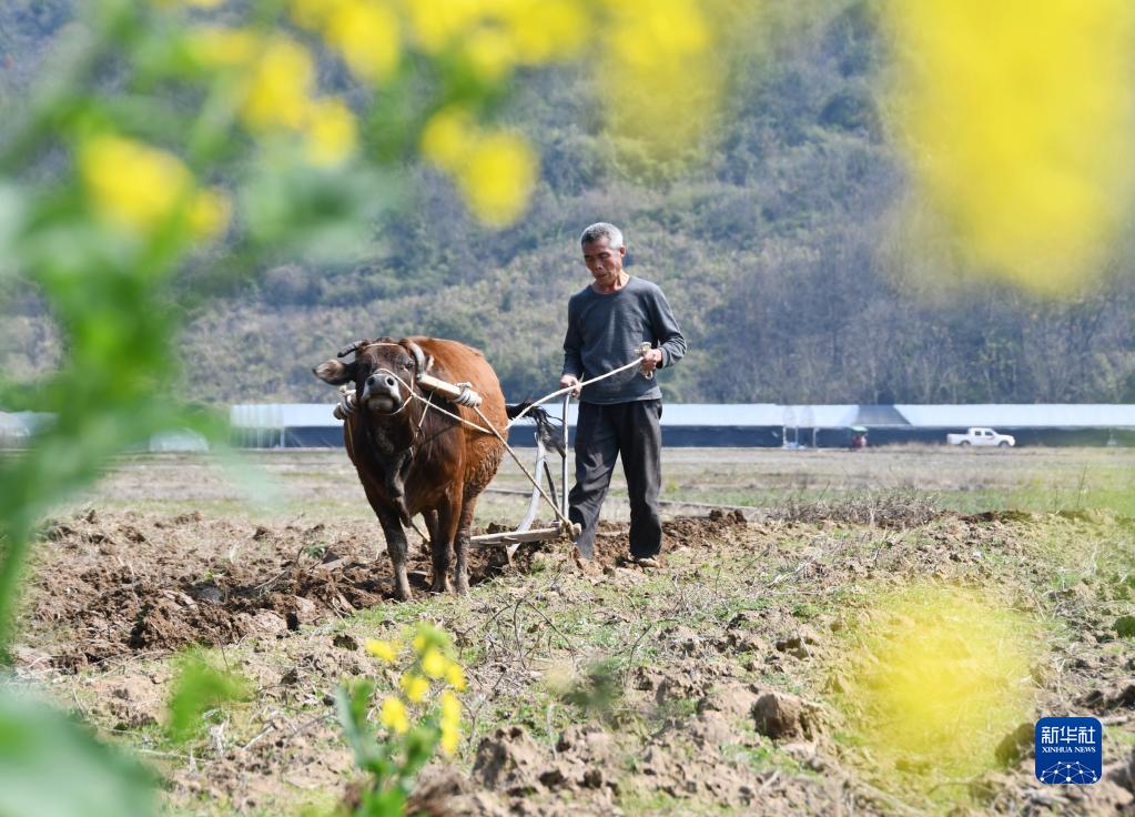 2月27日,湖南省永州市江永縣上江圩鎮龍田村村民在翻耕田地。