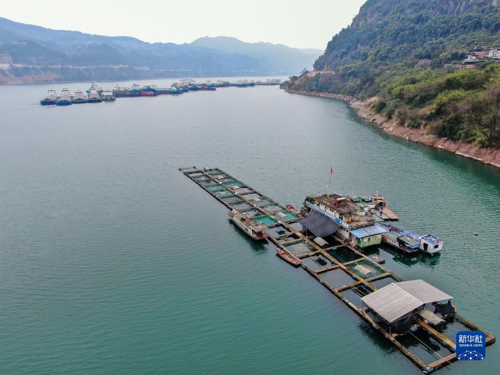 這是2月25日拍攝的三峽庫區珍稀魚(yú)類(lèi)馴養基地(無(wú)人機照片)。