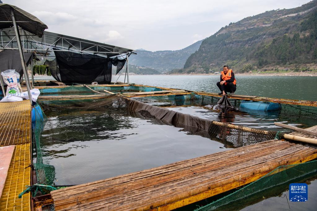 2月25日,三峽庫區珍稀魚(yú)類(lèi)馴養基地工作人員在查看長(cháng)江鱘的生長(cháng)情況。