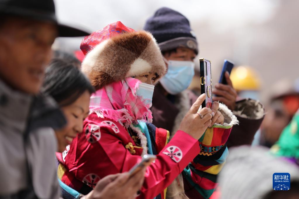 搬遷牧民用智能手機拍攝鄉親們表演的節目(2月28日攝)。收入高了,信號好了,告別封閉的游牧生活,智能手機成為搬遷牧民們人手一部的“標配”。