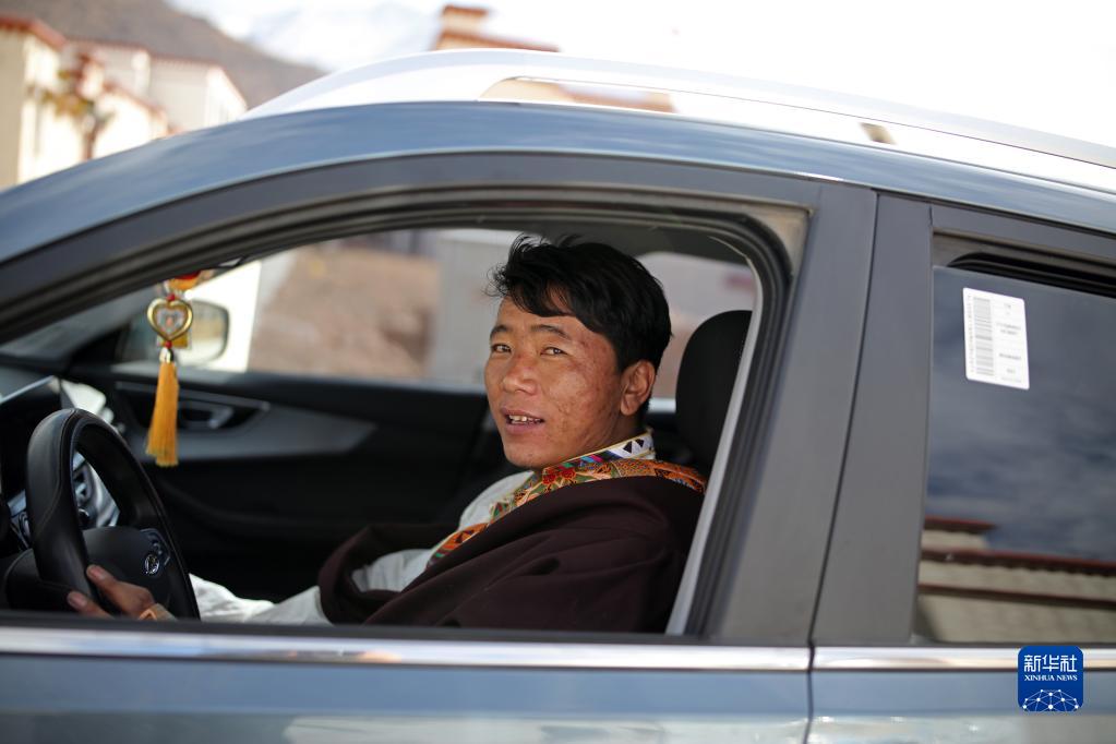 搬遷牧民叢美開(kāi)著(zhù)自己新買(mǎi)的汽車(chē)(2月28日攝)。