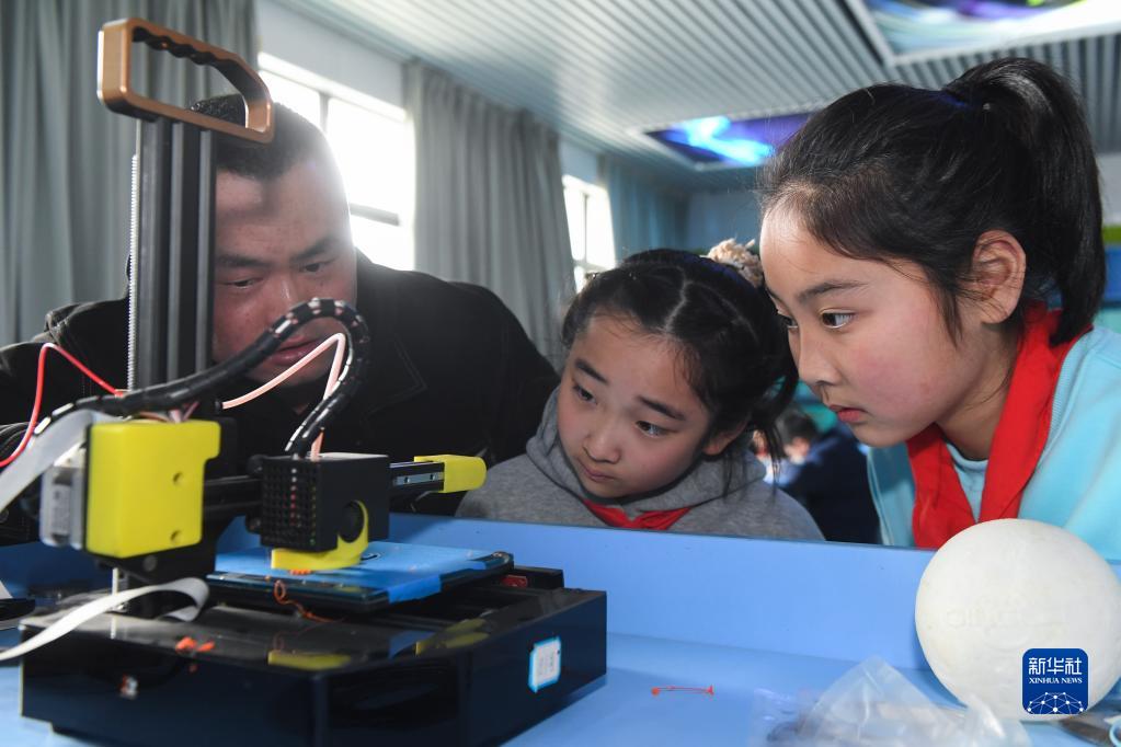 3月1日,杭州市臨安區科學(xué)技術(shù)協(xié)會(huì )工作人員在城北小學(xué)向學(xué)生介紹一臺3D打印機的工作原理。