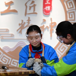 3月2日,在肥西縣嚴店中心學(xué)校少年宮,學(xué)生在木工坊里體驗學(xué)習。
