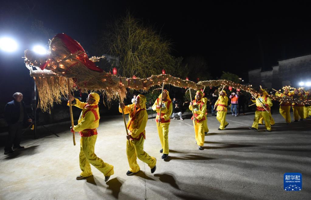 這是3月2日拍攝的黃山市徽州區蜀源村“舞草龍”活動(dòng)。