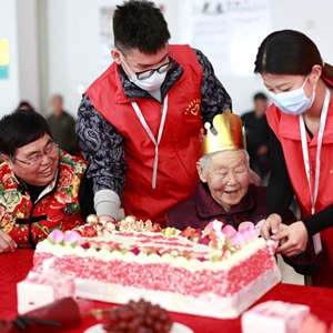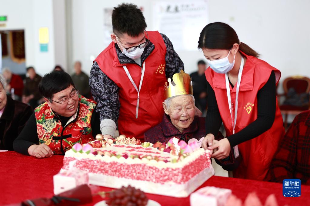 3月3日,河北省唐山市豐南區青年志愿者為豐南區??叼B護中心的老人們過(guò)集體生日。