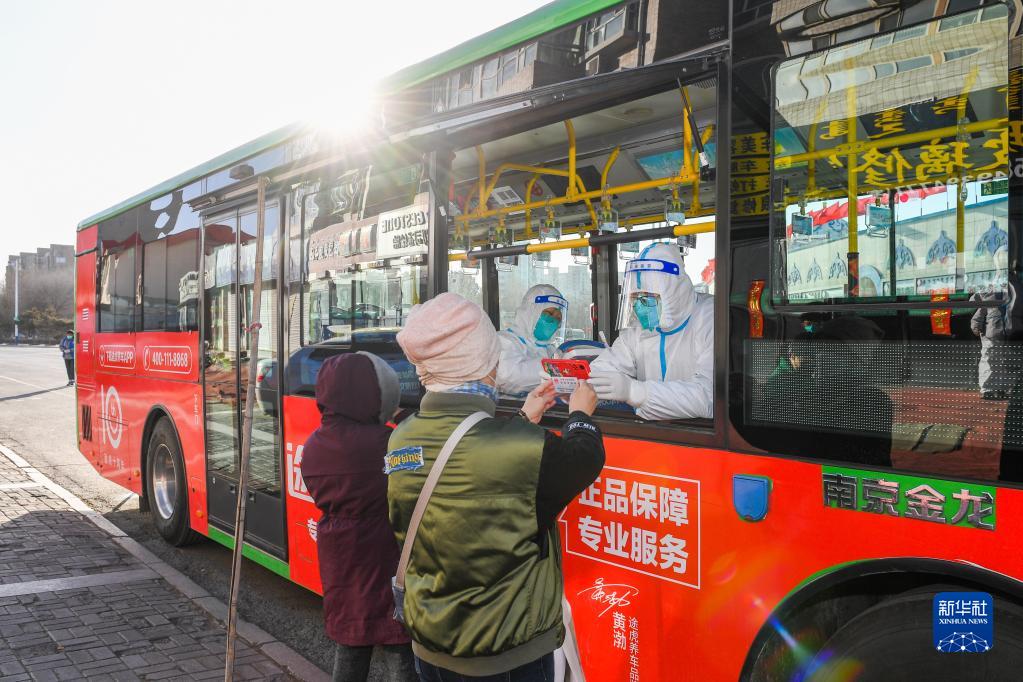 3月4日,在呼和浩特市新城區賽馬場(chǎng)社區臨時(shí)核酸檢測點(diǎn),人們在接受核酸采樣。