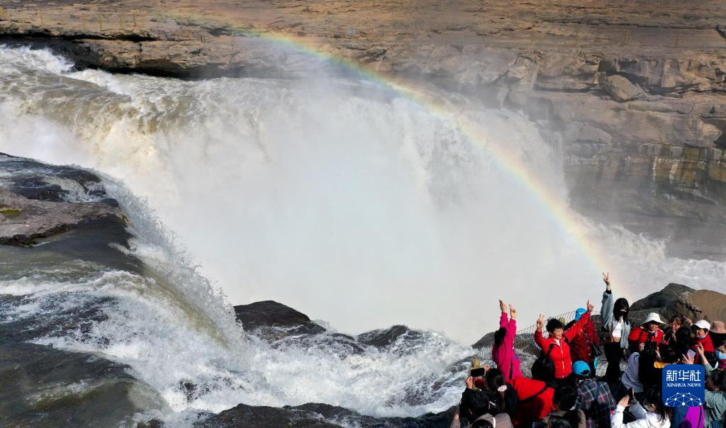 隨著(zhù)氣溫不斷回升,黃河壺口瀑布水流量明顯增大,在陽(yáng)光的照射下,飛瀑與彩虹相映成趣,把一幅動(dòng)靜結合的春天畫(huà)卷展現在游客眼前。