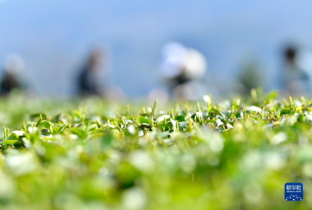 春暖茶山,春茶萌芽,茶農們采摘茶葉嫩芽,供應市場(chǎng)。