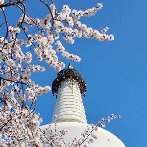 北京:山桃花開(kāi)映白塔
