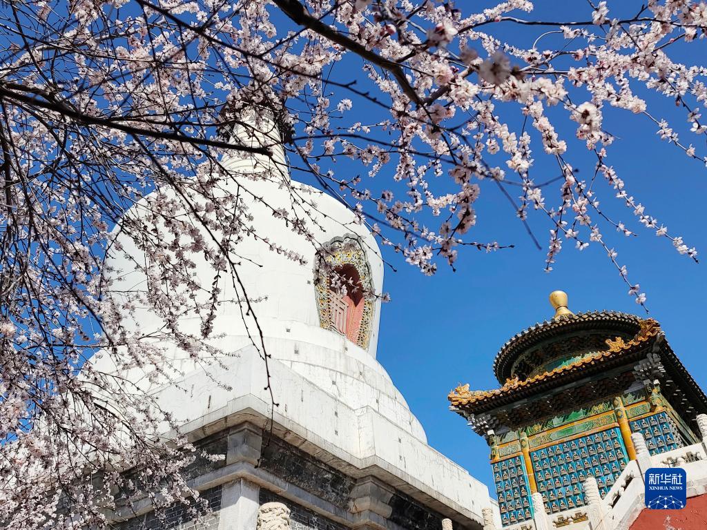 春暖大地,北京北海公園白塔旁的山桃花盛開(kāi),吸引不少游客前來(lái)欣賞。