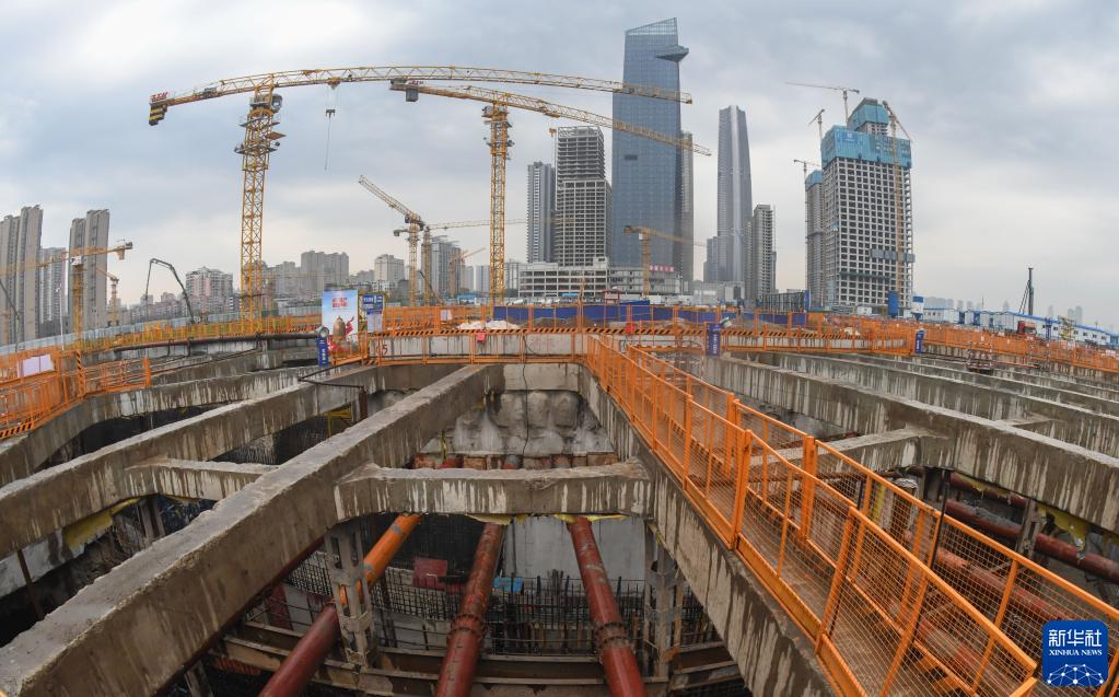 3月16日拍攝的建設中的武漢市武昌濱江核心區地下空間環(huán)路工程工地。