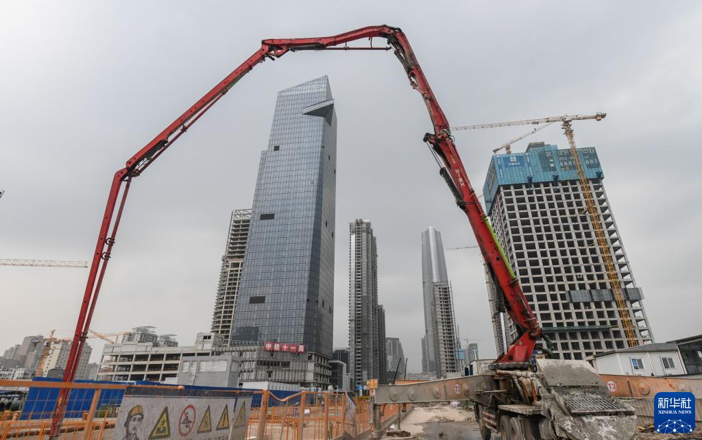 3月16日,大型機械在武漢市武昌濱江核心區地下空間環(huán)路工程工地施工。