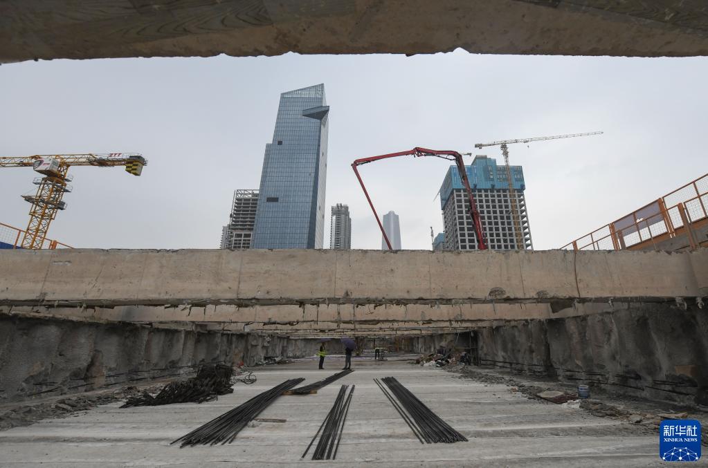 3月16日,大型機械在武漢市武昌濱江核心區地下空間環(huán)路工程工地施工。