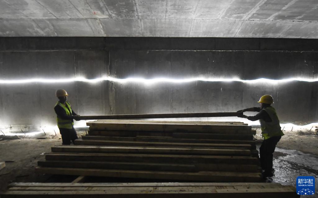 3月16日,工人在武漢市武昌濱江核心區地下空間環(huán)路工程工地施工。