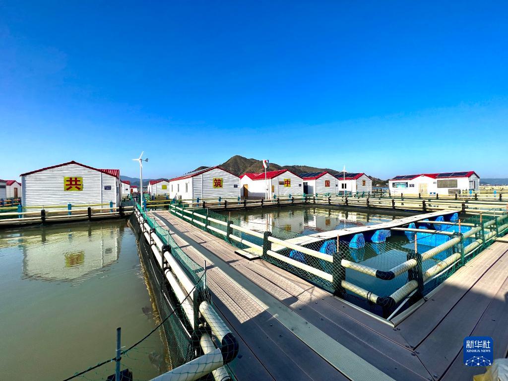 在福建省寧德市七星海域上,長(cháng)寬各18米的深水抗風(fēng)浪網(wǎng)箱后列著(zhù)一排排整齊的漁排房(3月8日手機拍攝)。
